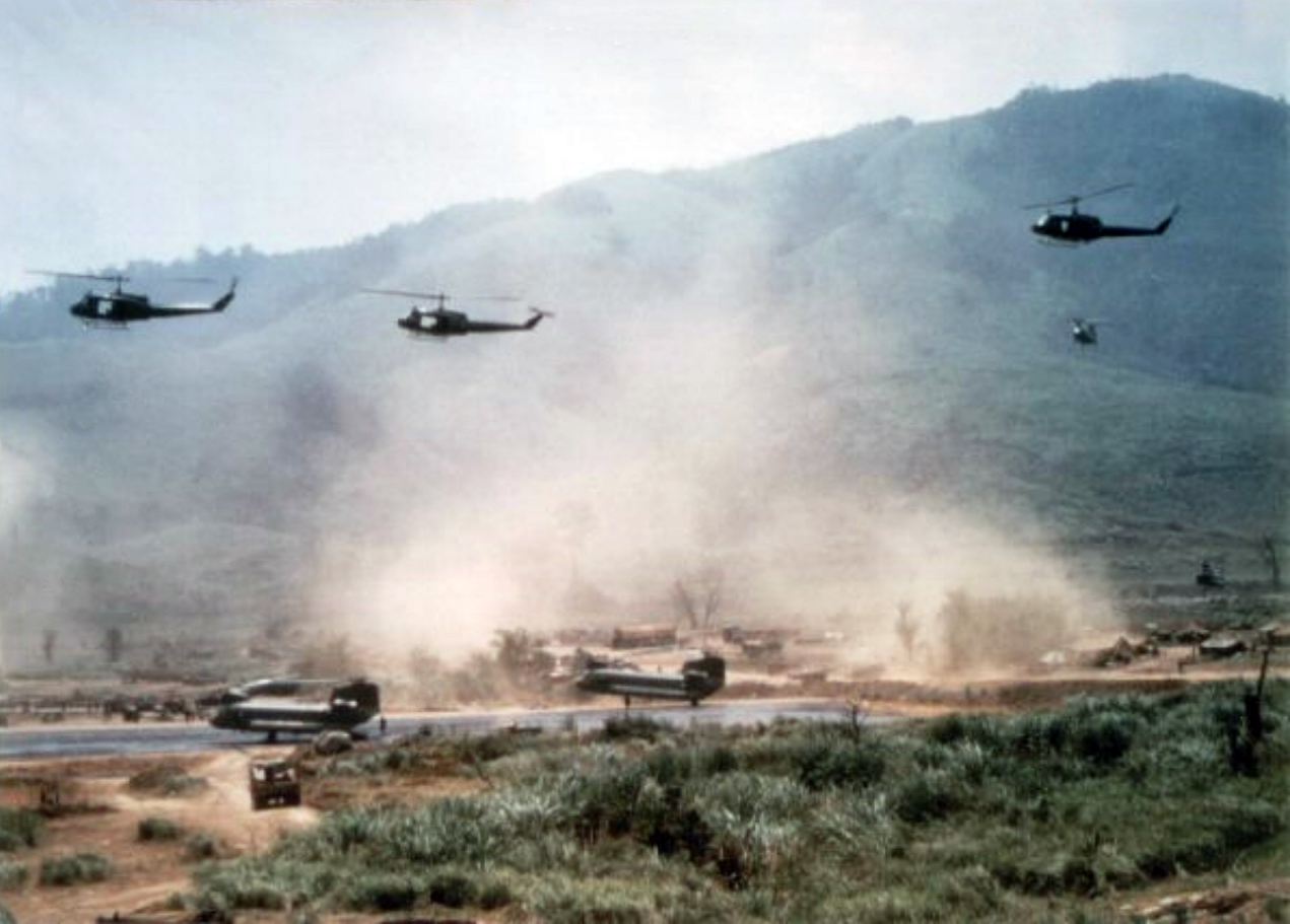 Intensive Helicopter activity on LZ Stud, 1968.