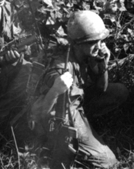 Sergeant Prock told us to take a light load with us instead of the approximately 70 pounds of ammo and equipment we humped when we were on search and destroy or cordon and search missions. We would take our M-16, about 200 rounds of ammo, our canteens, four grenades, our poncho, air mattress, and the PRC-25 radio. He also told us that we could set up our own schedule, but at least one person was to be awake and on guard duty at all times, and we were to inform the platoon RTO of any suspicious sounds we heard or movement we observed. He also informed us that the soldier who was on guard duty was to keep the headset of the radio close enough to his ear that he could hear the static that was constantly audible when no one was talking on that frequency. Sergeant Prock also informed us that periodically during the night, Ralph Ricedorf, his RTO, or Richard Waller, Lieutenant Pape’s RTO, would depress and then release the squelch button on the radio, which would cause the static noise to cease and no sound could be heard on the radio while the button was depressed. When the soldier on guard duty noticed the silence, he was to depress and release the squelch button twice to let the RTO know that he was awake and all members of the OP were in no danger. If the RTO did not hear the proper response with his first depression of the squelch button, he would wait a couple of minutes and depress the squelch button again. He would continue this procedure several times, or until he received the proper response. He then told us that anyone who fell asleep while on guard duty would have hell to pay when we returned to the LZ the next morning.